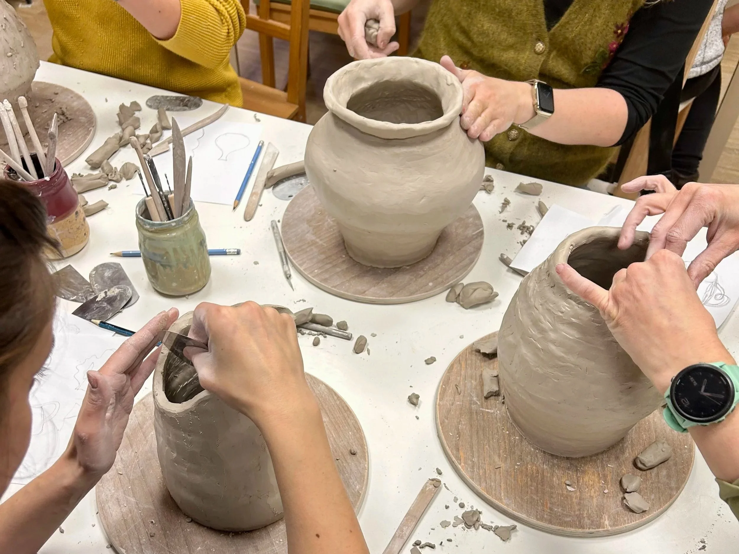 Am ersten Termin gestalten wir deine Stücke in Rohform. Du bekommst technischen Input und wir setzen deine Vasen-Ideen um.