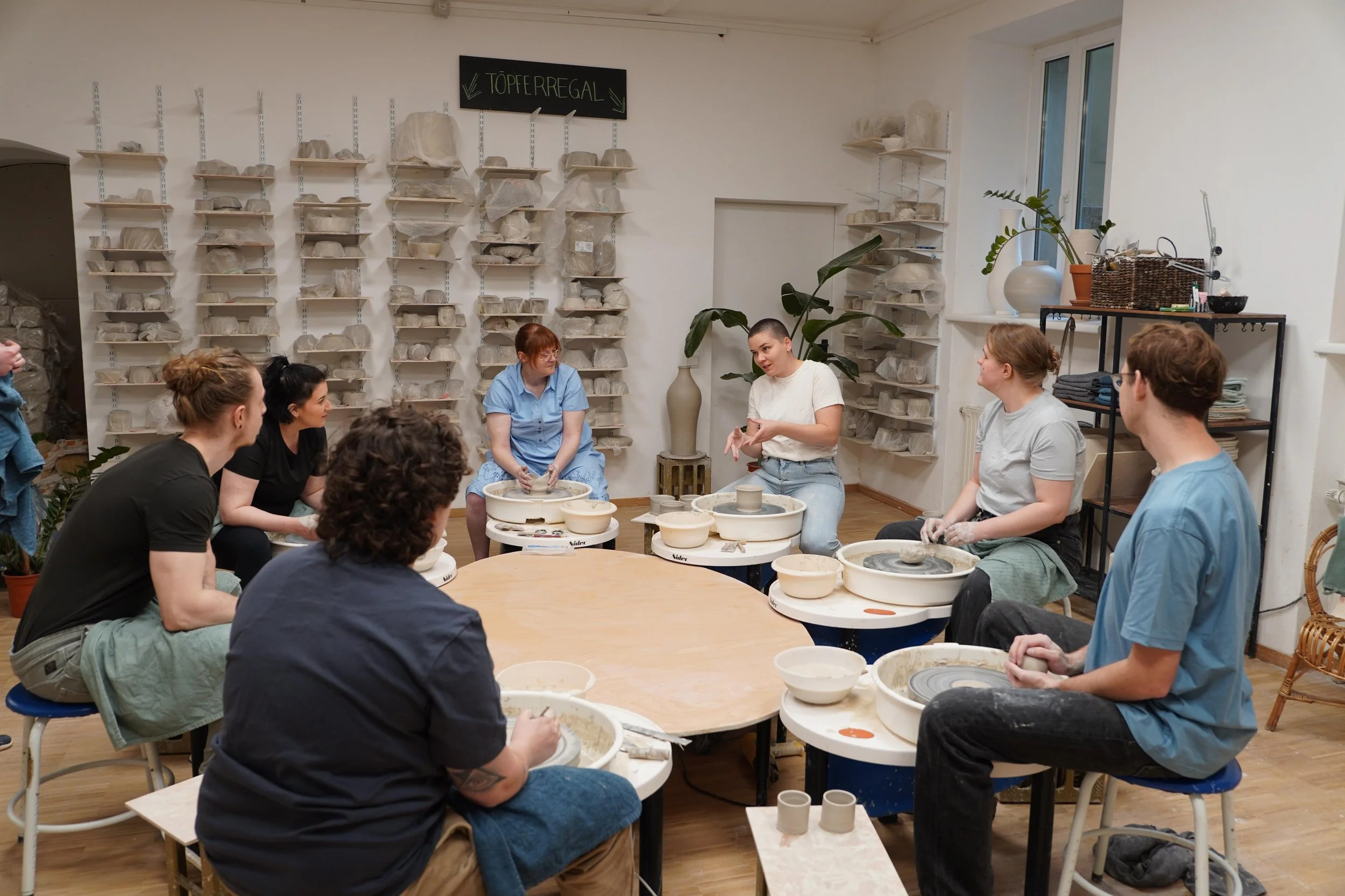 Kosten: 150,- (all incl.)Erlebe, wie du aus Ton deine ersten Unikate formst. Tag 1: Ton, Tools und Technik kennenlernen und erste Stücke gestalten. Tag 2: Feinschliff mit Henkel, Fuß oder Verzierung. Nach dem Brand folgen Glasur und Farbe.